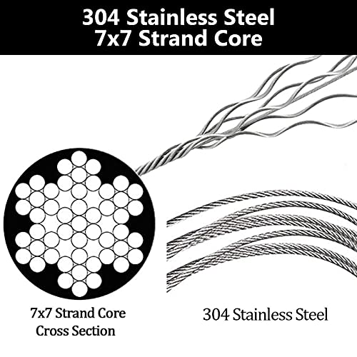 【Durable Stainless Steel Cable】 High Quality 1/16 inch 304 cable wire with 7×7 strands core, is superior rust-proof, waterproof, wear-resistant, corrosion-resistant, anti-oxidation and withstands high temperature, great for a wide range of operations and applications