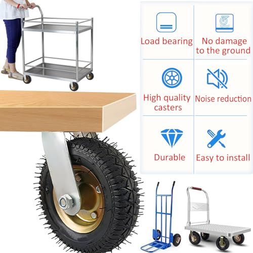 √【Shock Absorption and Compression Resistance】The rubber casters adopt a widened wheel surface with uneven texture, which is antis-slip and wear-resistant. It has a good shock absorption effect and can run smoothly on various roads.