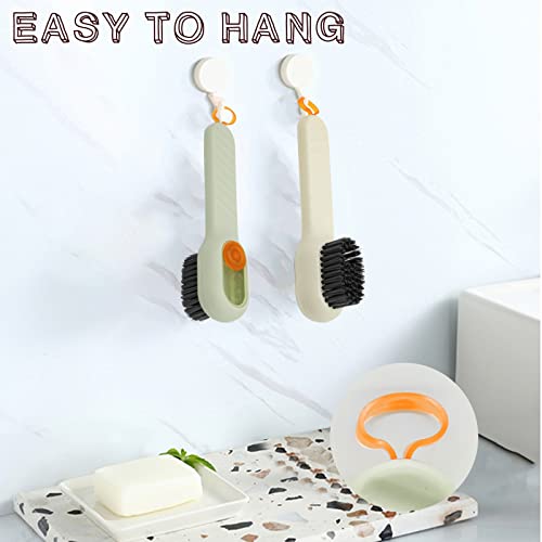 【Multifunctional Liquid Cleaning Brush】The cleaning brush with soap dispenser adopts a press-out liquid design, and there is a cleaning liquid reservoir on the back of the shoe brush, which can store more cleaning liquid and does not need to be replaced every time it is used; the storage of the soap dispenser brush is sealed design, so there is no need to worry about the cleaning liquid leaking; The hook design of the small cleaning brush makes it easy to hang it to dry after use.