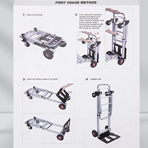 【Widely Use】Our Aluminium Hand Truck Dolly widely used in home, office, business, manufacturin, warehouse, garden, beverage delivery, food service, travel or shopping.This 2-in-1 aluminum folding hand truck is all you need to move cargo quickly and safely.Industrial-grade heavy duty hand truck dolly helps moving heavy objects,save your back and carry things around with the right tool for the job.