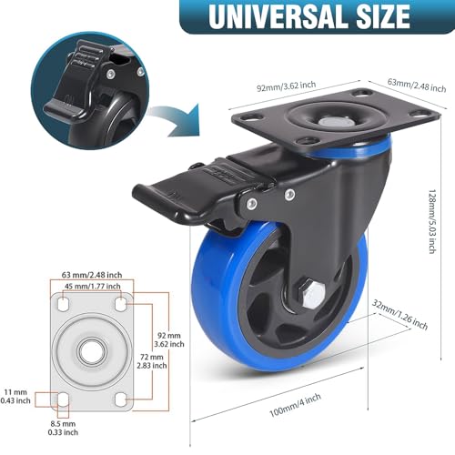 4″ Caster Wheels Set of 4, Heavy Duty Casters with Brake, Sa… is Marketed by https://www.excelinds.com/online-shop/