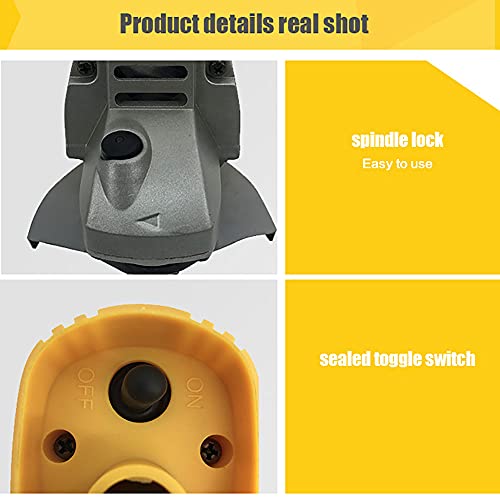 Disc diameter 100 millimeter (4 inch); no load speed 11000 rpm Sealed toggle switch provides protection from dust and filings extending switch life. Grinding wheel shown in the image & side handle do not form part of the product. Tool-free adjustable guard allows easy positioning for left or right handed use. Compact gear case allows use in tight and confined areas. Spindle lock for quick and easy disc changes
