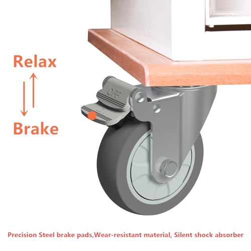 Caster Wheels: Not all caster wheels are created equal. Our industrial casters are made from industrial-grade zinc plated steel, precision ball bearings, and durable TPR rubber wheels, which gives them a long lifespan and makes them to protect against corrosion and rust