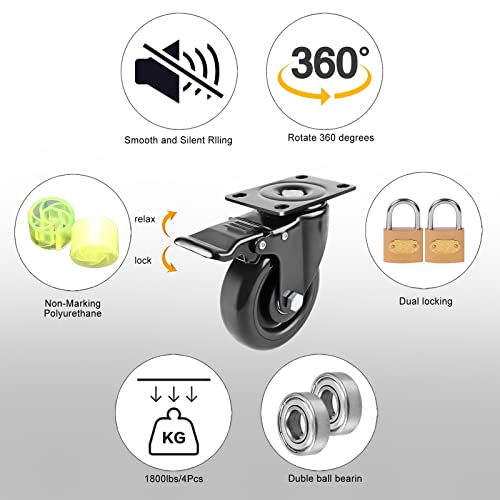 ▶FLOOR PROTECTION:Casters Set of 4 Heavy Duty with Brake is made of superior polyurethane with strong abrasion resistance, silent shock absorbers ,wearproof ,no drag marks,do not cause damage to your floor.