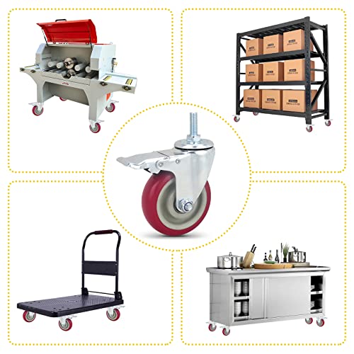 Stem Casters with Brake,Heavy Duty Caster Wheels Set of 4 PU Castors No Noise Swivel Casters M12x30mm with nut +Wrench