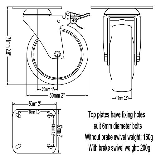 Wheel Diameter: 50mm 2″, Overall Height: 71mm 2.8″