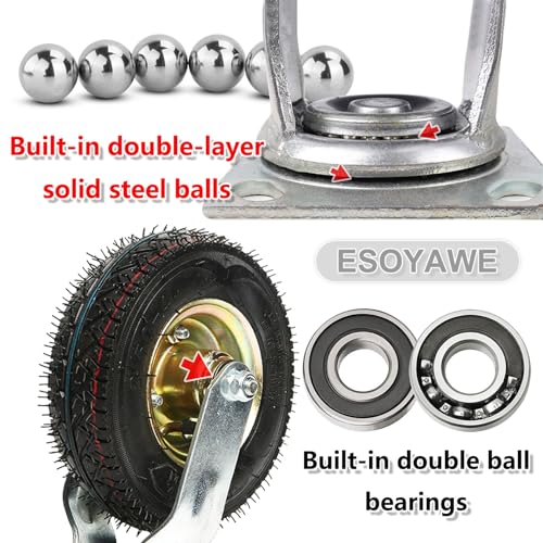 ⭐ Smooth: Pneumatic caster wheel hub and steering top plate are built-in high precision ball bearings and high strength solid steel balls respectively, which makes the tires easy to rotate and move, and at the same time reduces the wear and tear caused by rotation