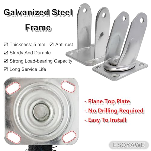 ⭐ Installation: heavy duty casters with mounting top plate, no drilling required, equipped with M10×50mm mounting bolts, which can be bolted or welded for fixing, perfect for DIY enthusiasts