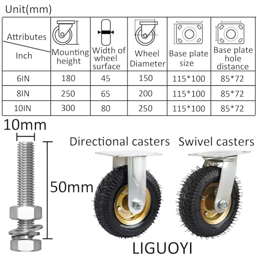 ▲【Specifications] There are 3 specifications of casters for you to choose from: 6/8/10 inches. The wheel diameters are 150mm/200mm/250mm, and the caster width is 45/60/80mm. They are flexible and convenient to use.