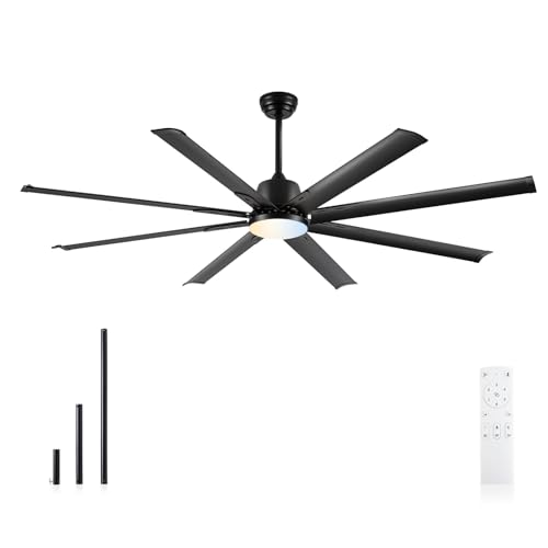 Powerful Airflow: This large 72 inch ceiling fan has a powerful airflow of up to 8500 CFM (in the highest setting speed), FCC, DOE and CETL certified. You can buy this ceiling fan with confidence. This CFM ceiling fan has 6 speed settings suitable for a wide range of scenarios such as living room, bedroom, garage, tent or outdoor ceiling fans latest intervention for patios