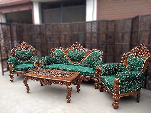 Aarsun Teak Wood 3+1+1 Living Room Maharaja Sofa Set with Ce… is Marketed by https://www.excelinds.com/online-shop/