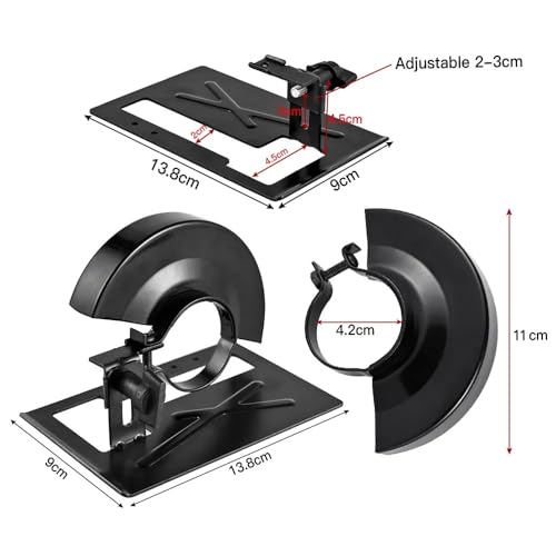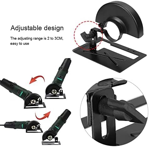 ADJUSTABLE – The angle grinder base plate has an adjustable design with an adjustment range of 2 to 3 cm, which can meet different cutting needs and is more convenient to use. The protective cover must meet 2 conditions to be used with the bracket: 1. The screws on the protective cover can be removed. 2. The opening of the protective cover is on the left.