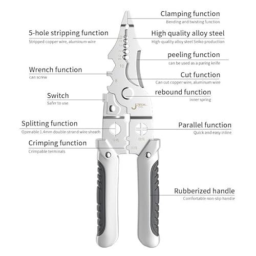 ❖【 FEATURES 】 :- The stripper can precisely strip AWG 10, 2.6, 2.0, 1.6, 1.3, 1.0, 0.8, also support other AWG size stripping wire by Strip, Cutting wire, and Cut Copper Only, Pliers Nose bending and twisting wire to a shape for install into socket or Components, Splitter module can split one wire to two wires, Winding module is up to four wires to be tightly wound and rewound together, crimping tool is crimping both insulated. ensure safe use by the switch.