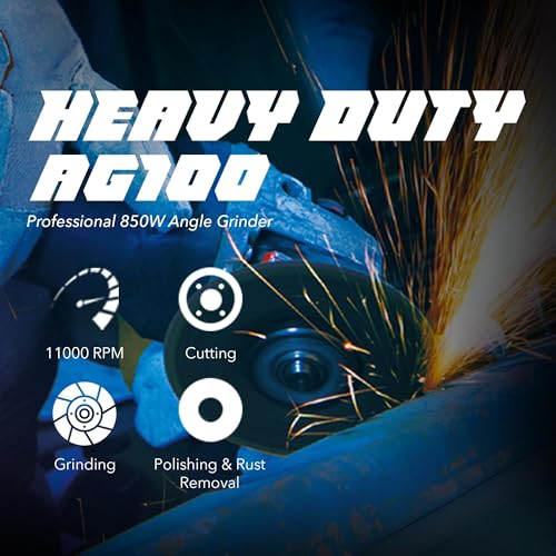 POWERFUL ANGLE GRINDER & SLIDE SWITCH: Equipped with 849 Watts output power motor, this portable angle grinder can produce no-load speed of 11000 rpm for most demanding applications. The slide switch helps control the grinder easily in one hand and gives the user the option to keep the machine running continuously while doing repetitive operations.