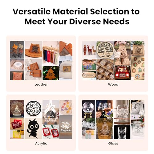 Explore more fun: The laser cutting machine can engrave on various materials such as paper, bamboo, wood, leather, PCB boards, aluminum oxide, metal, glass, etc. You can unleash your creativity and create various works or gifts.