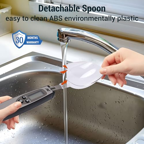 Easy to Clean: The digital measuring cup scale features a detachable scoop design for fast, thorough cleaning, ensuring hygiene with every use. With a practical hanging loop, it stores neatly in any kitchen, keeping your space organized and making cleaning and storage quick and easy