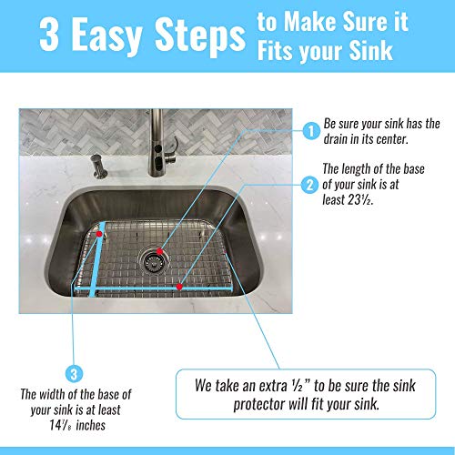 Measure the bottom of your sink – Sink Length: 14.875″ or more, Sink width: 23.5″ or more.