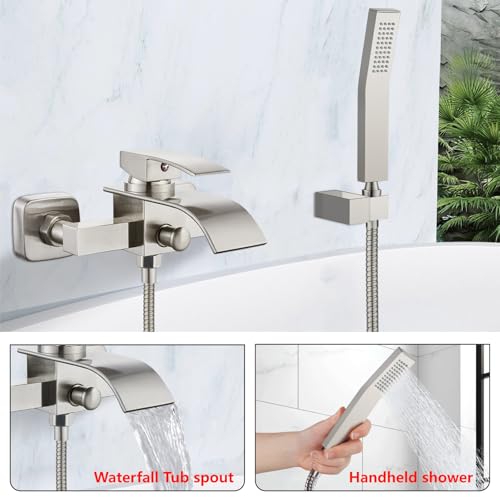 Brushed Nickel Wall Mount Bathtub Faucet with Handheld Spray… is Marketed by https://www.excelinds.com/online-shop/
