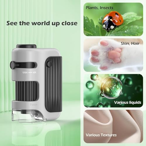 Best Gift: Microscopes for students. This is great for Kids teenagers student adults. We can explore the microscopic world through the kids pocket microscope, stimulate curiosity about nature, and easily cultivate scientific interest.