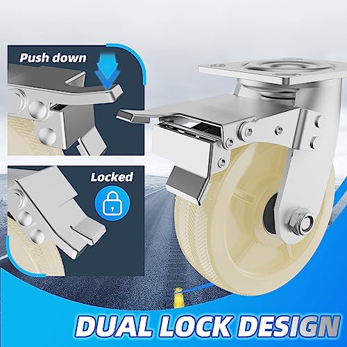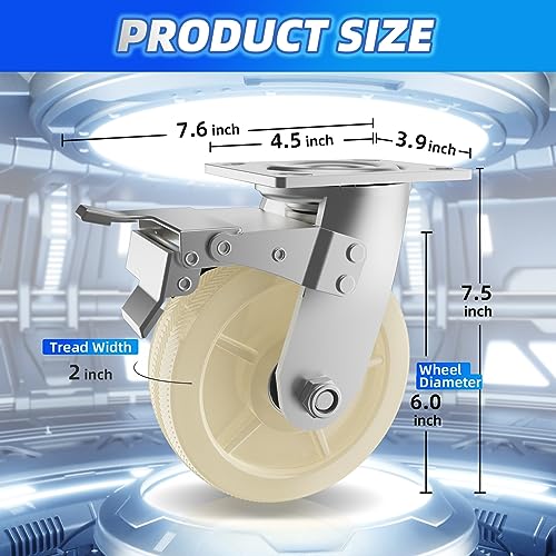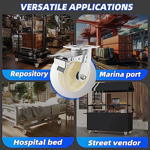 Caster Wheels Heavy Duty: Each 6 inch caster wheels can carry up to 900 pounds, and casters set of 4 can carry up to 3600 pounds with ease. Our casters match many common carts and dollies. They have lightweight polypropylene wheels that roll well on smooth surfaces.