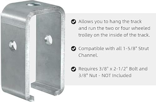 Application:The channel trolley track hanger bracket allows you to hang the track and run the two or four wheeled trolley on the inside of the track. Fit for use with All 1-5/8″ Series Strut Channels