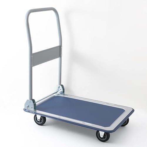 FOLDABLE TROLLEY: It functions as a push dolly cart and can be easily folded for storage when not in use. The cart can be folded and used easily in 3 seconds, just by stepping on the track. Take it in the car, or store it in the garage.