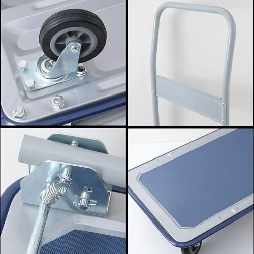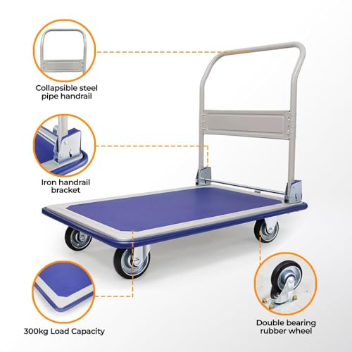 STURDY AND DURABLE WITH LARGE STORAGE CAPACITY: The Trolley has a solid frame made of steel for added durability and has ergonomically designed grip handle. It has a Heavy steel structure, capable of carrying up to 300 kg of goods. The handrail angle is reasonably designed without hurting the waist and back.