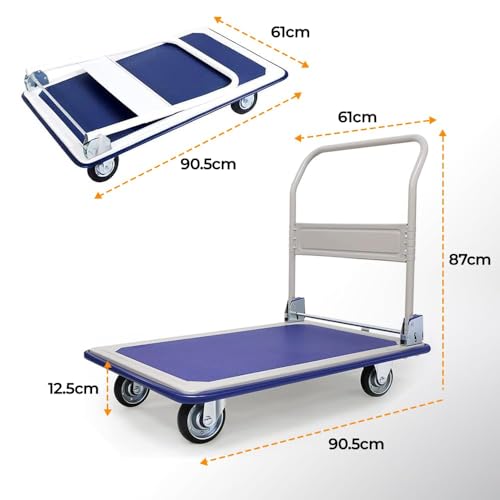 PRODUCT DETAILS: Open Size 90 X 61 X 87 cm; Folded size 90 X 61 X 11.5 cm; 12 Kilograms. It has a capacity of 300 kg. Ideal for transporting heavy, bulky, and large items such as boxes and furniture around the home, garden, or workplace.