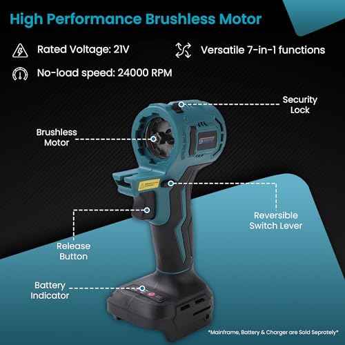 Efficient and Durable Brushless Motor: This tool is equipped with a high-quality brushless motor, known for its efficiency and durability. The brushless design reduces friction noise, extends the motor’s lifespan, and ensures optimal performance throughout your projects.