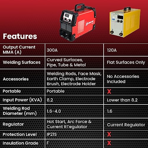 DURABLE AND PORTABLE: The Cheston Pro MMA Welding Machine features a robust construction with IP21S protection and F insulation grade, providing durability and safety in different work environments. Its compact external dimensions make it highly portable and easy to transport.
