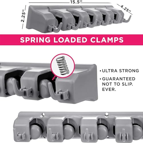 ✅ Waterproof & Durable: ChillyFit mop holder wall mounted is made of high quality pp plastic waterproof and rustproof. Triangle-buckle & petal-shaped gear adjust size automatically based on different thickness of the handles to prevent object slipping. Can stand up to 10 KG, more strong and sturdy than plastic holder.
