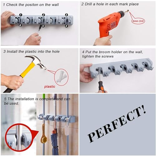 ✅Multi-purpose Storage: Mop organizer is helpful to organize the mop, broom, umbrella, brush, shovel and other tools, keeping your home clean. The hooks can hang a variety of daily items, improving storage space.