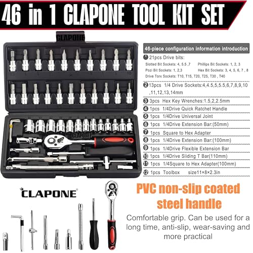 CLAPONE 46-Piece Tool Kit with 1/4″ Drive Socket, Screwdrive… is Marketed by https://www.excelinds.com/online-shop/
