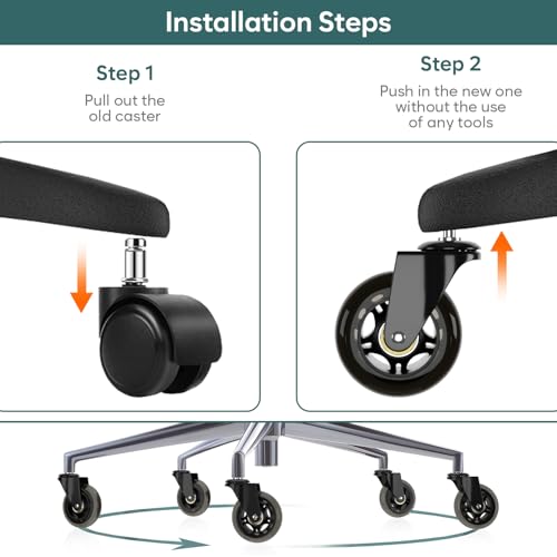 Assembly: DIY, easy pull & snap installation, Upgrade your home or office chairs by simply replacing old conventional chair wheels with unique casters of striking beauty and add a touch of cool luxury at your workplace