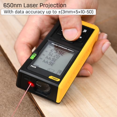 COMPACT AND DURABLE DESIGN: Designed with both portability and durability in mind, the Deli Laser Distance Measure is compact enough to fit in your pocket, yet robust enough to withstand demanding work environments. Its ergonomic design ensures comfort during use, while its sturdy construction ensures longevity.