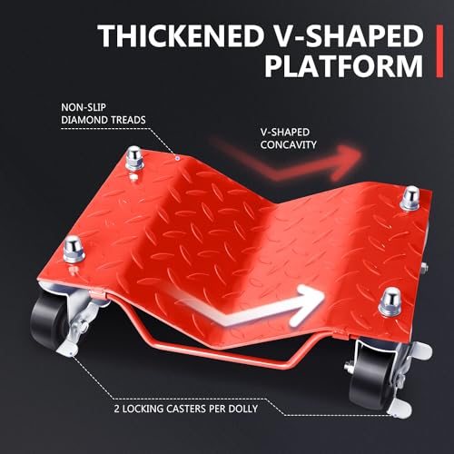 NON-SLIP SURFACE – The tread of the wheel dolly is rough that increase friction and prevent slip; Its recessed center works for balance and keeps the auto tire securely in place.
