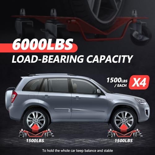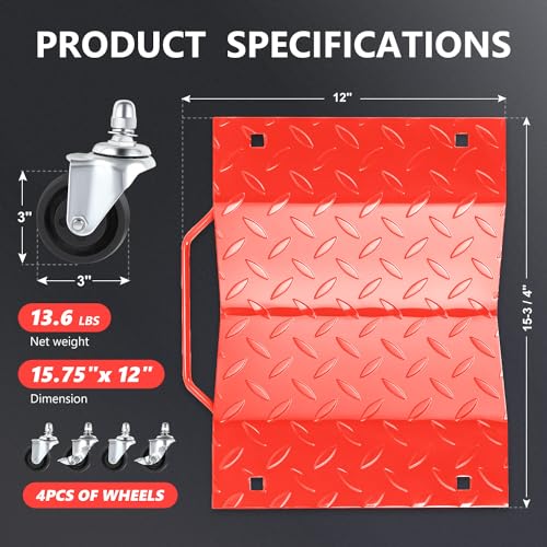 4-PACK CAR WHEEL DOLLIES – Each car dolly consists of a steel plate measuring 15.75 x 12 inches (L x W) and 4 wheels measuring 3 inches in diameter, making it able to support up to 1500 lbs.
