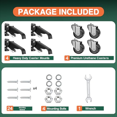 Easy Installation of Workbench Casters: Our set includes four workbench casters, a screwdriver, and screws for hassle-free assembly; Detailed instructions ensure quick and straightforward installation