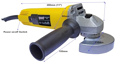 Disc diameter 100 millimeter (4 inch); no load speed 11000 rpm Sealed toggle switch provides protection from dust and filings extending switch life. Grinding wheel shown in the image & side handle do not form part of the product. Tool-free adjustable guard allows easy positioning for left or right handed use. Compact gear case allows use in tight and confined areas. Spindle lock for quick and easy disc changes