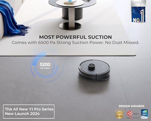 6500 Pa SUCTION POWER: With an impressive 6500 Pa suction power, the Y1 PRO effectively removes dirt, debris, and pet hair, leaving no dead corners behind.