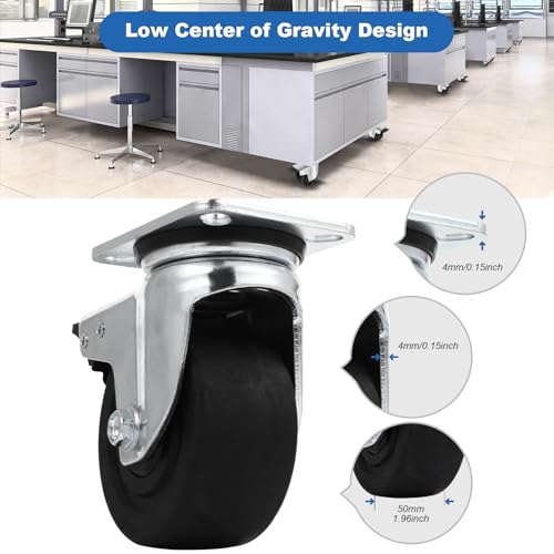 Increased Stability: Enhance equipment stability with our 4 Inch heavy duty caster wheels featuring 2 inch wide nylon wheels. The low gravity design, high-quality materials, and 4mm thick steel plate construction ensure an impressive load capacity of 7000 lbs, preventing tipping and providing exceptional stability during movement.