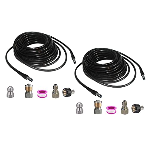 Package Includes:2pc Pressure Washer Drain Sewer Set(2pc M22-14, 2pc 1/4 quick connector, 2pc rotating nozzle, 2pc sewer jetter nozzle, 2pc thread seal tape, 2pc rubber tube)