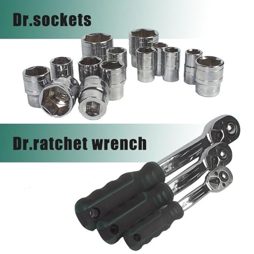 Includes a collection of the most popular sockets, ratchets, wrenches, bits and universal joint: (10) 1/4″ Dr. Sockets, (6) 1/4″ Dr. DeepSockets, (11) 3/8″ Dr. Sockets, (6) 3/8″ Deep Sockets, (8) 3/8″ Dr. Torx Sockets, (10) 1/2″ Dr. 12PT Sockets, (5) 1/2″ Dr. Impact Sockets, (6) 1/2″ Dr. Sockets, (6) 1/2″ Deep Sockets, (2) 1/2″ Dr. Sockets (SAE), (1) 1/4″ Dr. Spinner Handle, (1) 1/4″ Dr. Extension Bars, (2) 3/8″ Dr. Extension Bars, (2) 1/2″ Dr. Extension Bars, (2) 3/8″ Dr. Spark Plug Socket, (22) Dr. Bit Sockets, (20) 1/4″ Dr. Bit, (3) Universal Joint, (3) Quick Release Ratchet Handle, (12) Spanners, (9) Long Ball Point Hex Keys, (3) Double Ended Ratchet Ring Spanners.