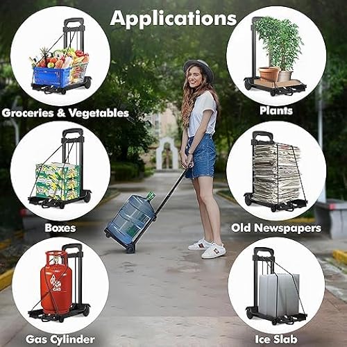 【Compact Folded Size, Easy to Store】: This hand truck trolley can be folded to a small size with light weight, save more space, can be stored in wherever you want and be carried even by hand when you need to use it somewhere, more convenient.