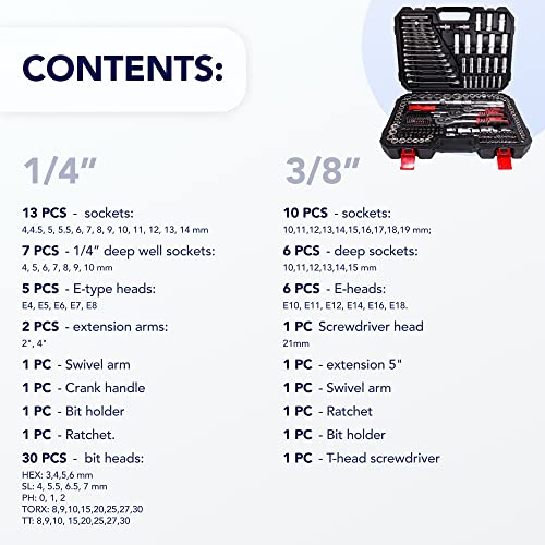 FORCEKRAFT Tool Set 216 pcs, 1/4”3/8”1/2” 6gr. 4-32mm is Marketed by https://www.excelinds.com/online-shop/