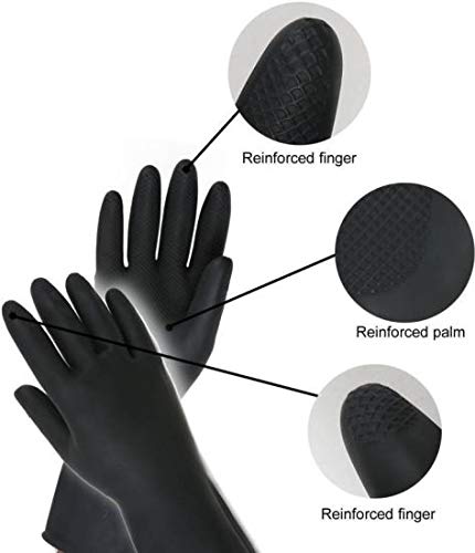 Added Grip and Narrower Wrist: Wash gloves have to be able to handle not just soapy dishes but slippery detergent bottles and smooth plastic utensils. We have added tiny gripping nubs to the surface so you can manage them all with ease. These rubber gloves also feature a narrower middle area on the wrist which ensures a snug fit and means that they only come off when you want to take them off.