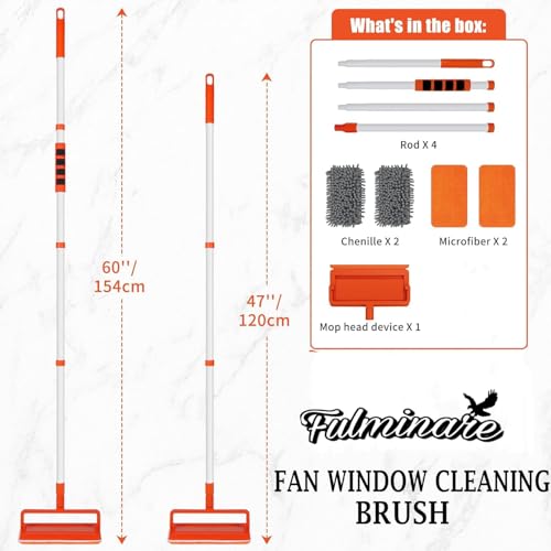 【More Than Just A Ceiling Fan Blade Duster Tool】Fulminare ceiling fan cleaner kit equipped with unique cleaning head, designed to clean ceiling fan without using ladder, walls, baseboards, moldings, windows, blinds, tile, floor etc.