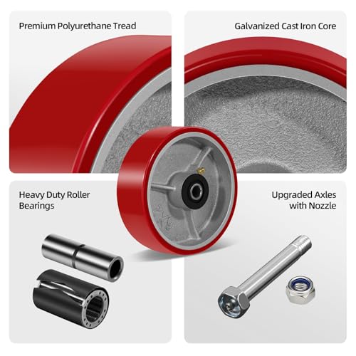 WHEEL SIZE: Wheel diameter: 4,5,6,8 inches, width: 2 inches, Hub Length: 2-7/16″,with ¾’ roller bearing and 1/2″Axle Bore. Weight capacity ranges : 4″wheel: 800 lbs. 5″wheel: 1000 lbs. 4″wheel: 1200 lbs.4″wheel: 1500 lbs.
