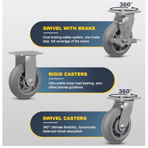 【Widely Use】: These are fantastic wheels for many applications like Bakery & Food Service, Institutional, Hotel and Hospital Equipment, Laboratory Equipment, Utility and Maintenance Carts, Moving Dollies .Also High-quality Caster wheel can drastically help you improve your Heavy Duty Caster rolling performance in the right environments.