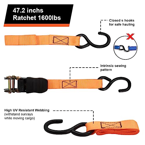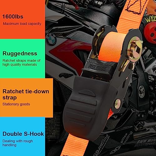 STURDY AND DURABILITY: The ratchet strap is made from quality materials that make it strong and durable for repeated use. Its strength is tested and confirmed by its impressive 1600lbs maximum load capacity. The double s-hooks can handle rough handling while the ratchet mechanism ensures the goods remain secure throughout the ride.